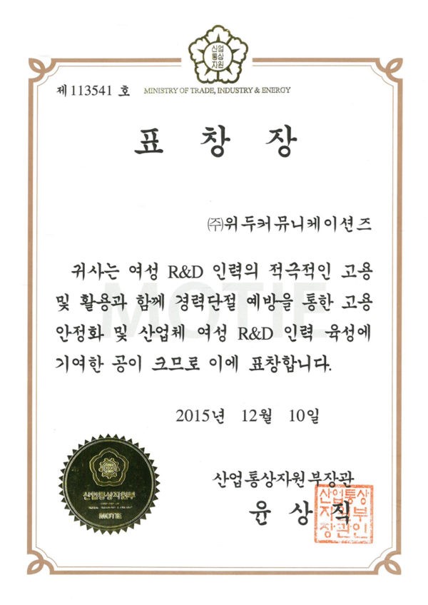 - PreviousKorea Venture Business Womens Association Award Certificate 19.06.04
