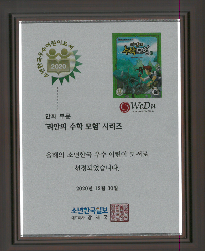 2020 소년한국 우수 어린이 도서 선정 페이지 정보 작성자 WeDu 댓글 0건 조회 7,750회 작성일 21-12-31 13:00 본문 2020-12-30 '리안의 수학 모험' 시리즈 우수 어린이 도서 선정 소년한국일보 대표이사 List Previous2021 4IR AWARDS 대상 21.12.31 Next2020 기술혁신 우수기업 21.12.31